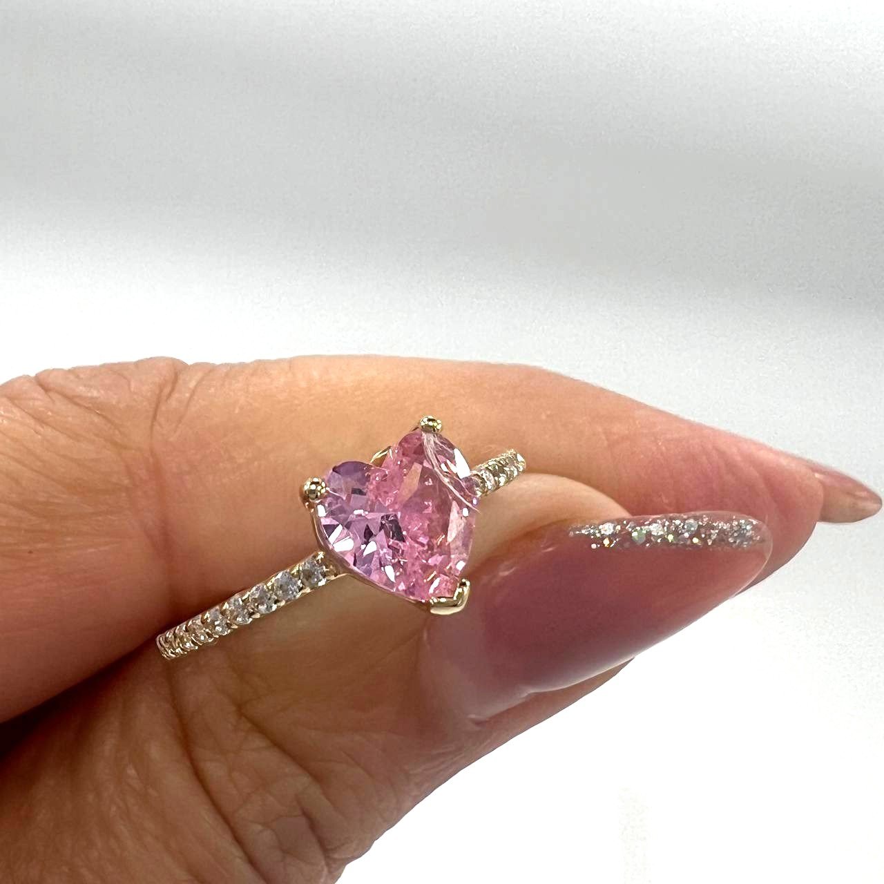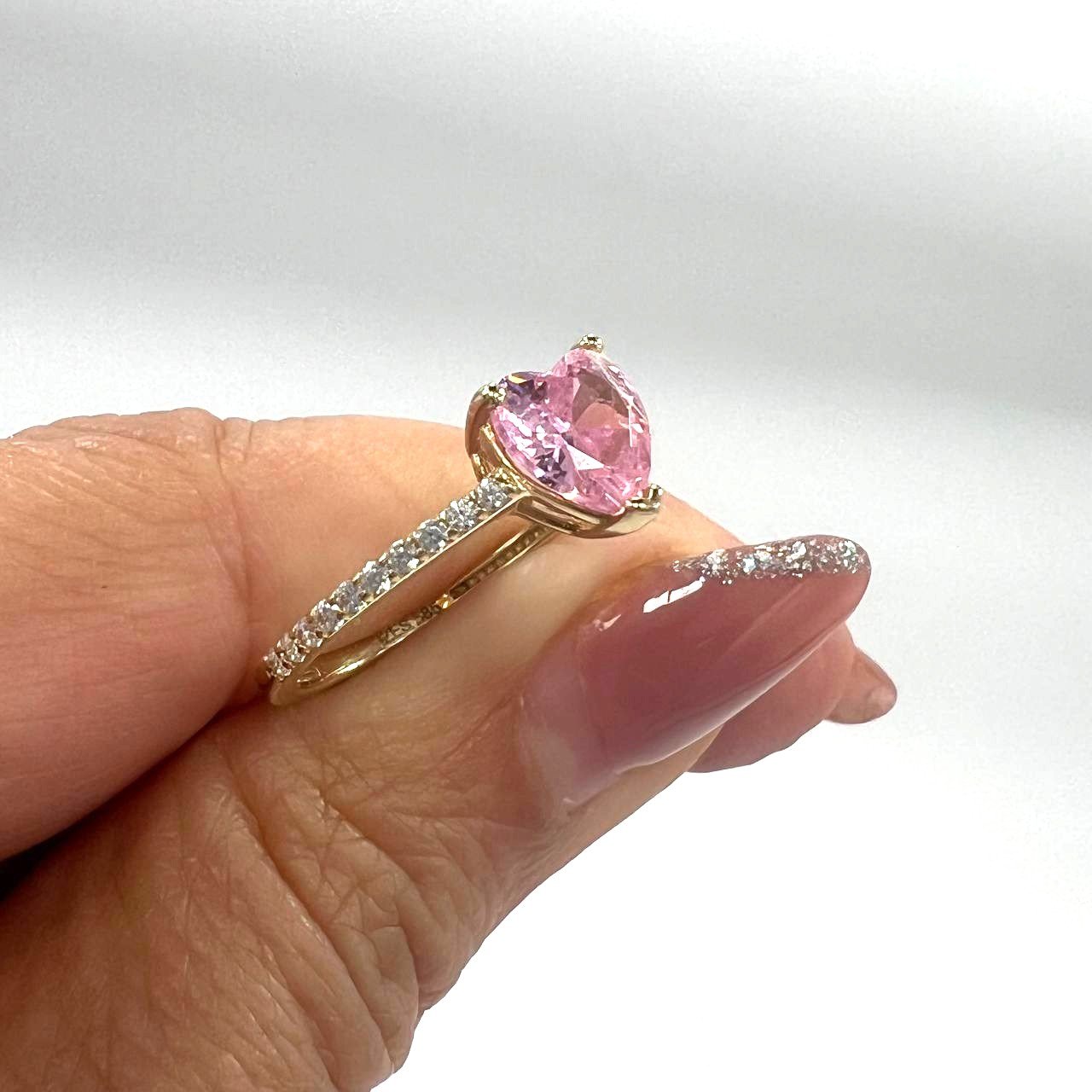 This 14K yellow gold ring captures timeless elegance with a romantic touch. Its heart-shaped pink stone radiates warmth and charm, making it a perfect symbol of love and sophistication. Crafted with precision and care, this piece adds a graceful sparkle to every look—whether for daily wear or a special occasion. A thoughtful gift for someone you love or a luxurious treat for yourself, this ring speaks the language of beauty and elegance in every detail